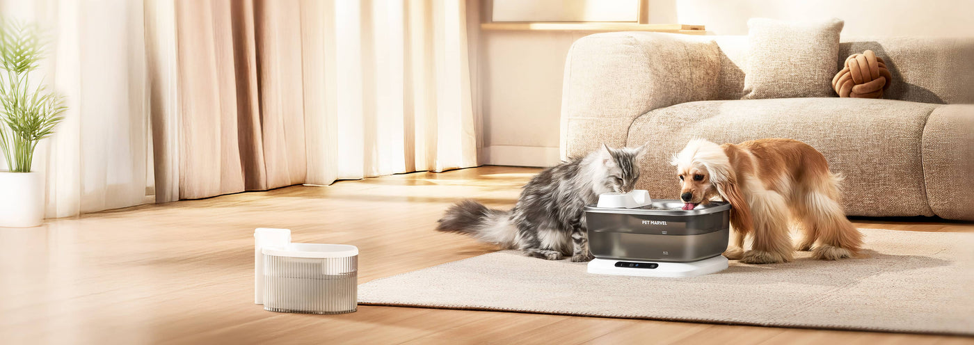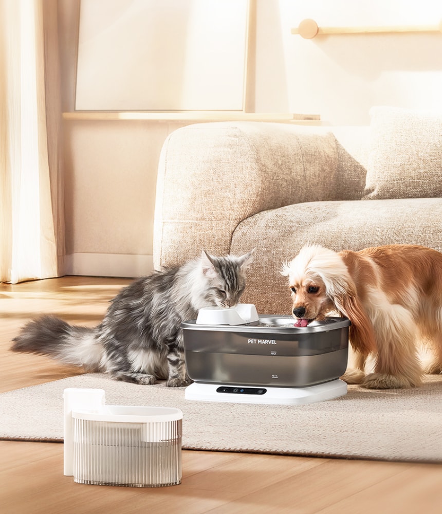 Was looking for a larger fountain for my multiple animals and this one delivered perfectly! The capacity is huge and it moves a lot of water. It came with multiple filter replacements which was really nice, and everything comes apart easily to clean. It is nice the top is stainless steel which makes cleaning fast. It is also very quiet which is a big plus. My dog and two cats all happily use it and therefore I am happy!
