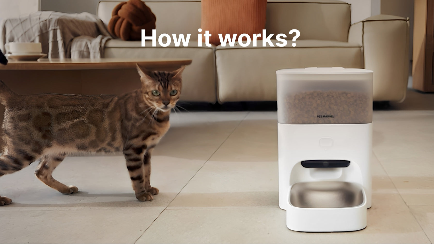 Place the feeder in your pet’s usual feeding area and avoid setting a schedule initially. Allow your pet to explore it for a day or two. Add some food or treats to help them get familiar. Press the "Feed" button while they are present to create a positive association with the feeder.