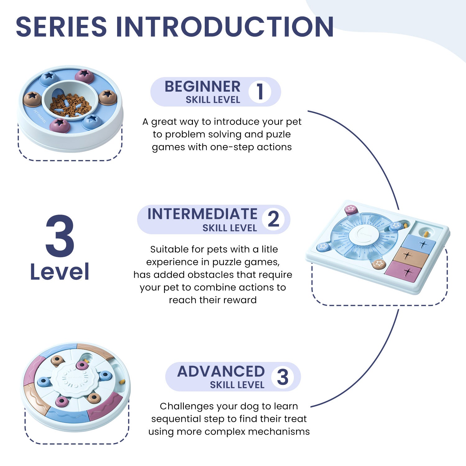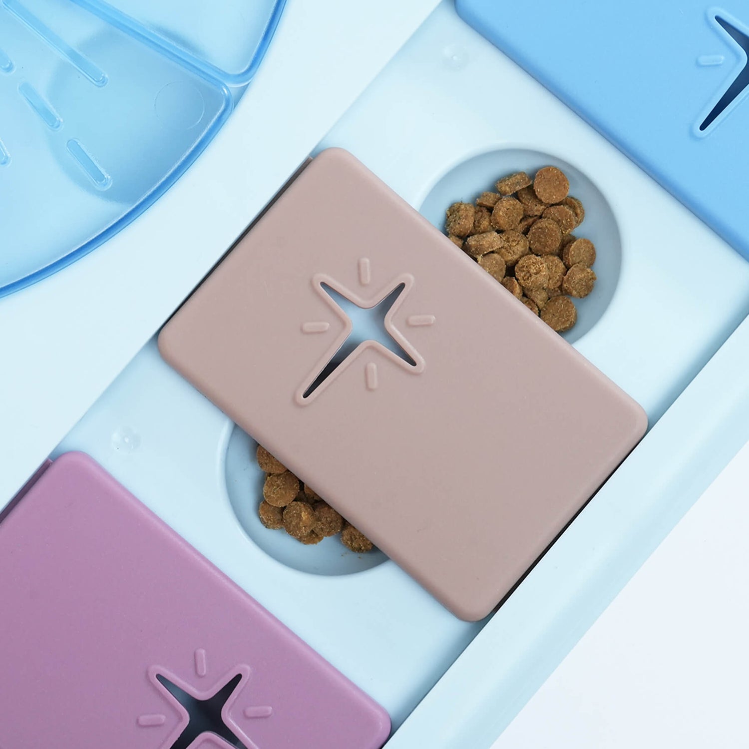 The dog puzzle toy can effectively extend your pet's eating time and exercise their thinking skills. It is removable, easy to install and easy to clean, as well as having non-slip feet on the bottom and an overall anti-side-tip prevention.With three different patterns and sizes to choose from, there's one for your dog!