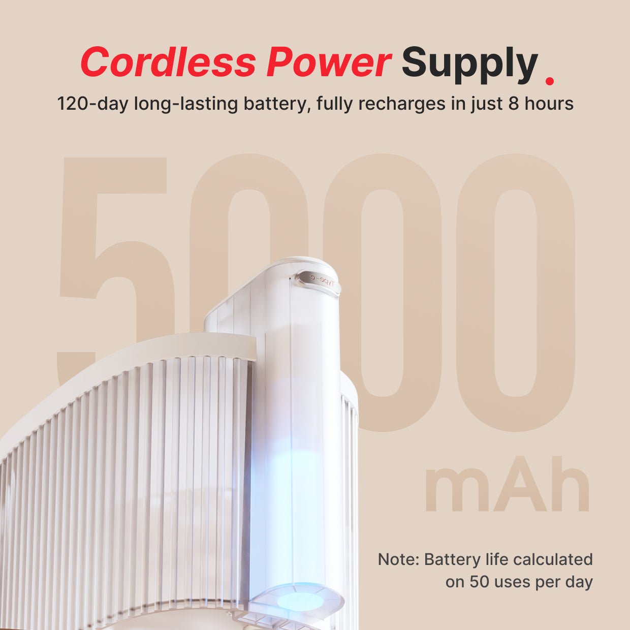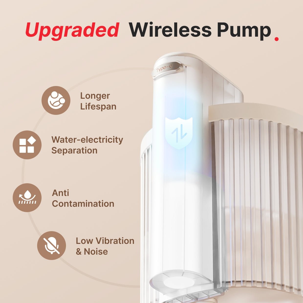 The Pet Marvel cat water fountain, cordless and battery-operated for easy placement and mobility, boasts a 120-day long-lasting rechargeable battery. It features an automatic motion sensor for efficient operation, ensuring safety with a design that separates water and electricity, and includes a high filtration system for clean drinking water. Its large 2.5L capacity and quiet pump make it perfect for homes with pets, offering convenience and peace of mind for pet owners